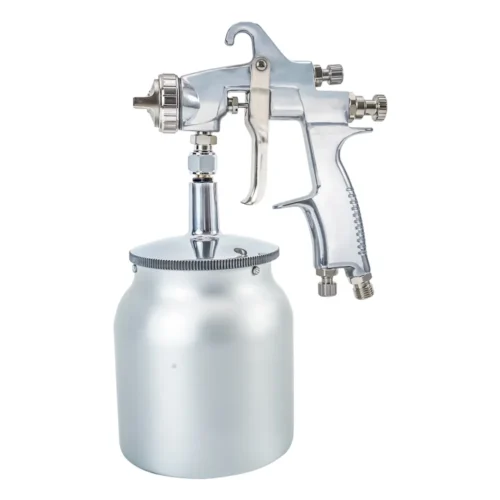 Conventional suction type spray gun, qualified for painting work on construction or industrial purpose.