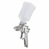 Conventional gravity feed spray gun, suitable for industrial purpose and car refinishing painting. Equipped with a 600c.c. gravity cup, a spanner, a cleaning brush and a paint filter.