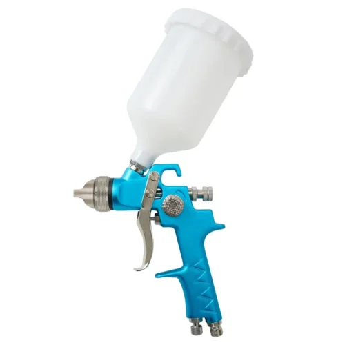 Conventional gravity feed spray gun, suitable for industrial purpose and car refinishing painting. Equipped with a 600c.c. gravity cup, a spanner, a cleaning brush and a paint filter.